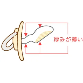 乳首部分の厚みが薄く、前歯や上アゴへの圧力を減少させます。